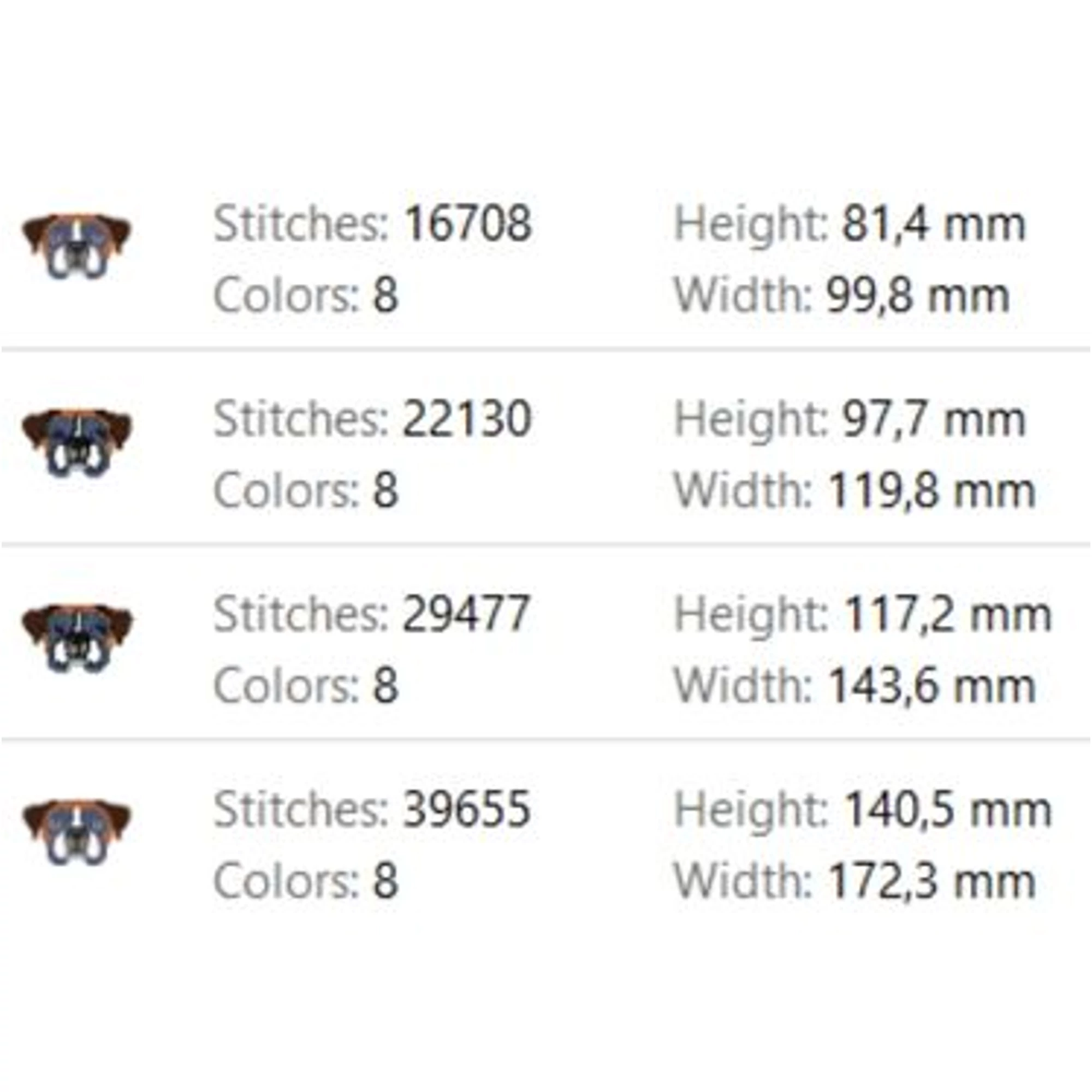 Add charm to your embroidery projects with this detailed Boxer dog face design. Perfect for decorating t-shirts, pillows, tote bags, or gifts for dog lovers.