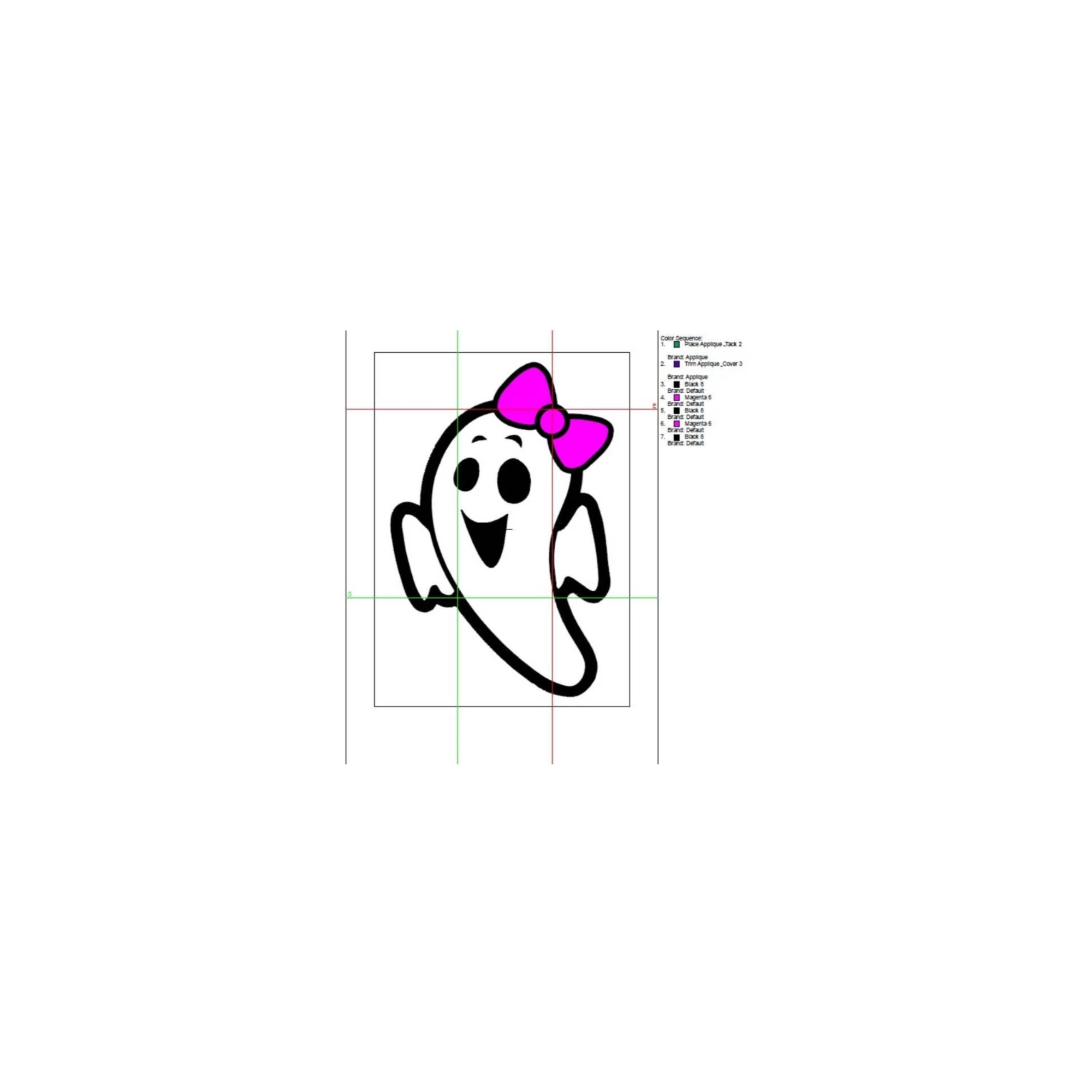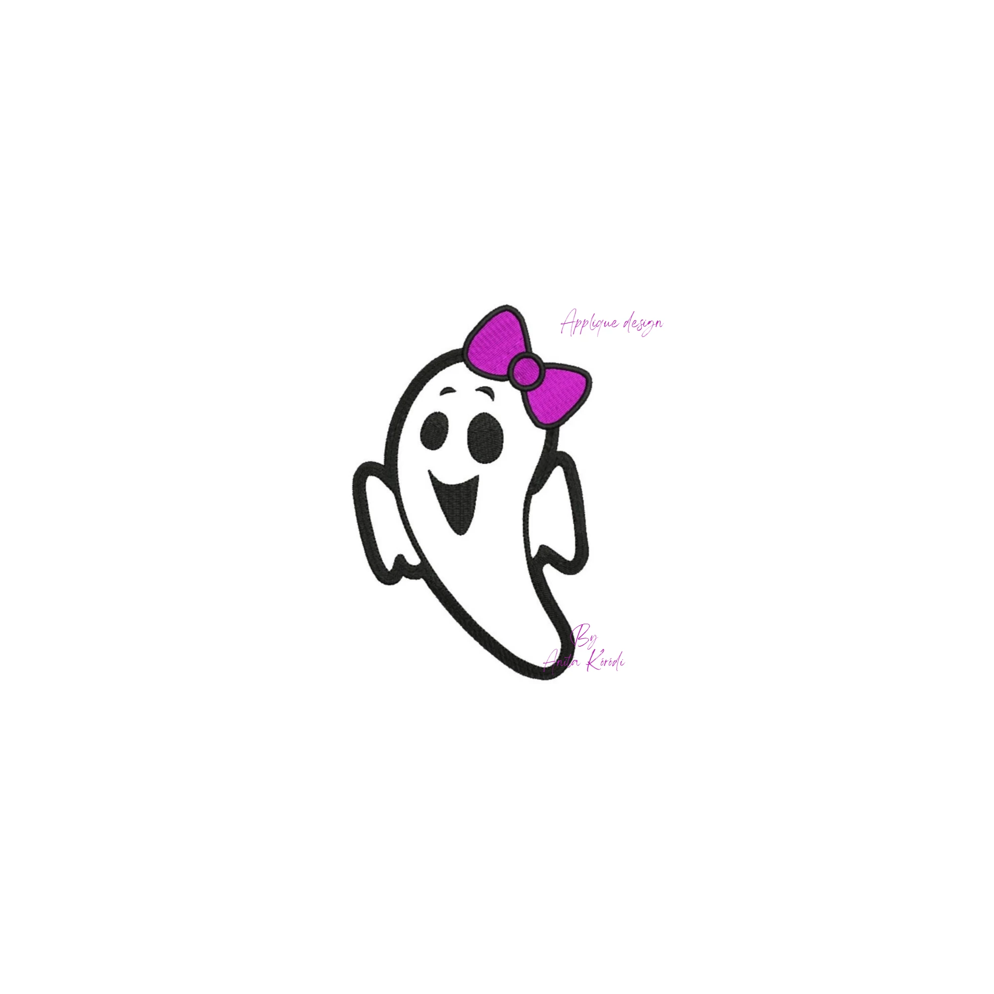 Cute ghost with bow applique embroidery design