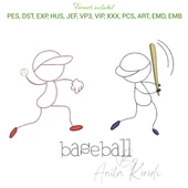 Baseball players embroidery machine design