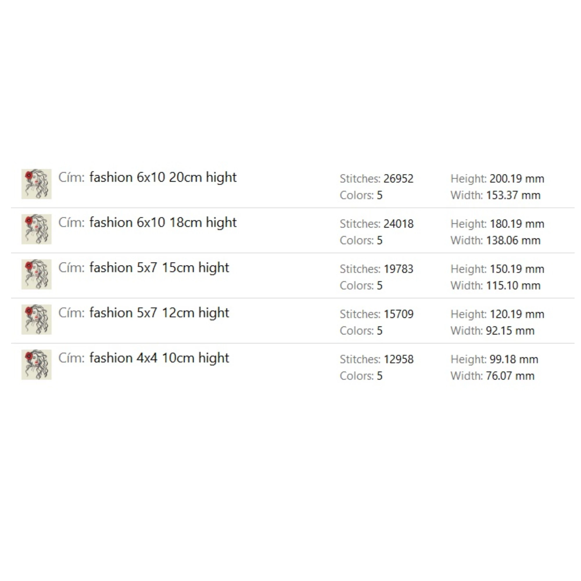 15x20cm hight 5.9'x7.48'Formats: PES / EMD / VIP / VP3 / HUS / SEW / EXP / DST / JEF / ART / XXX