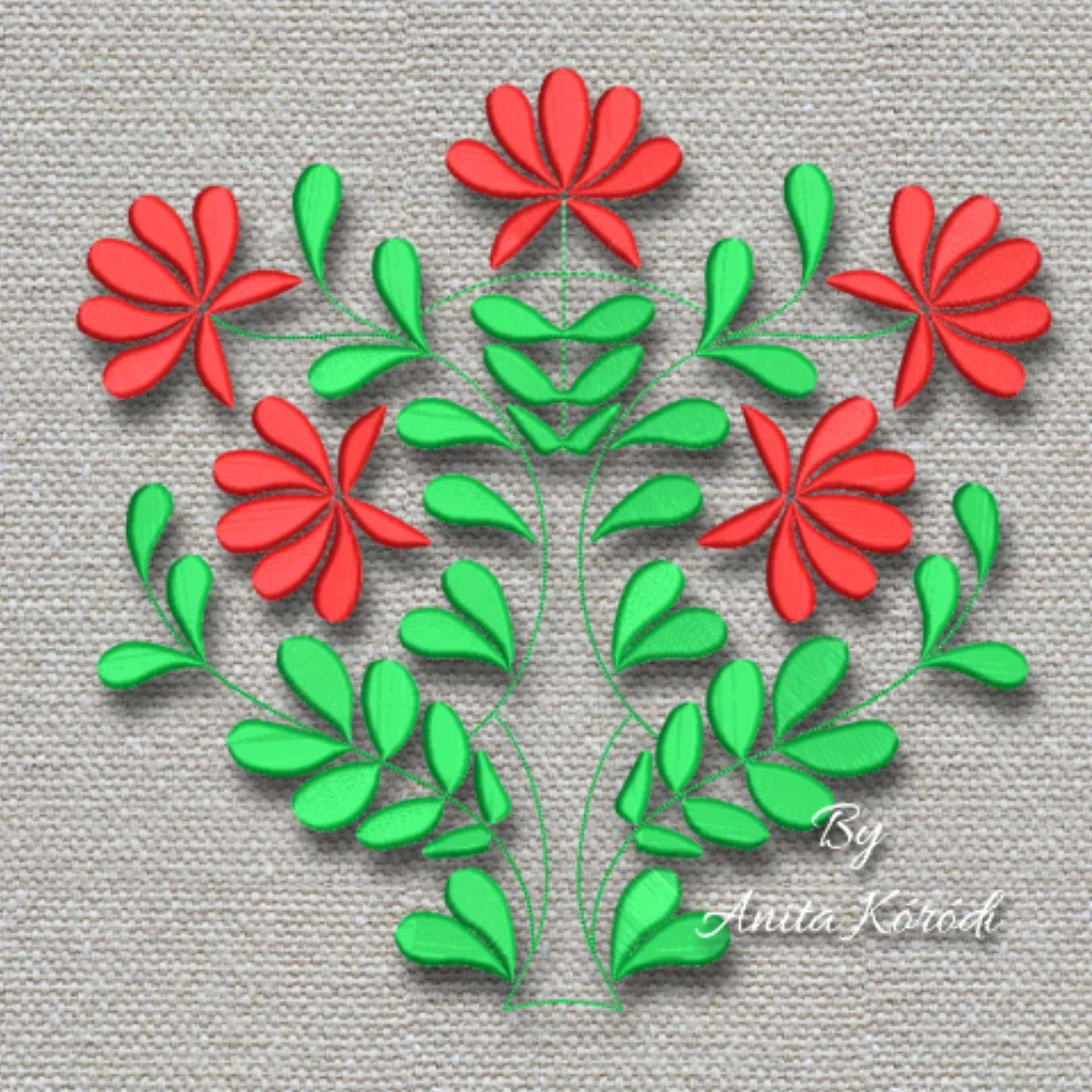 Flower folk embroidery design
