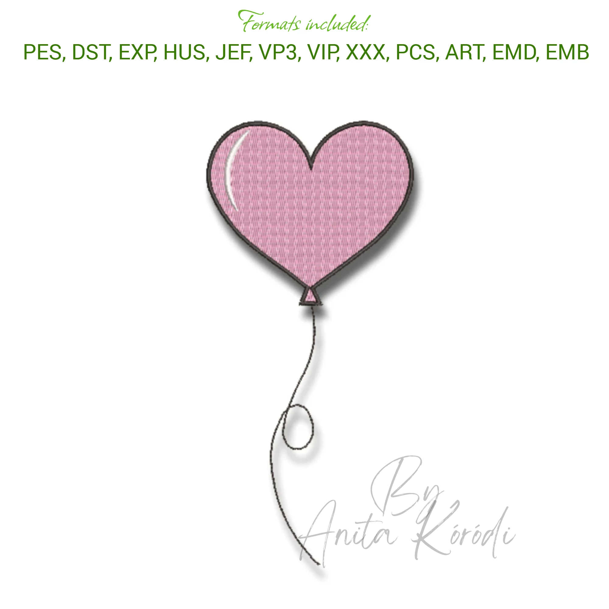 Heart luftballon embroidery machine design