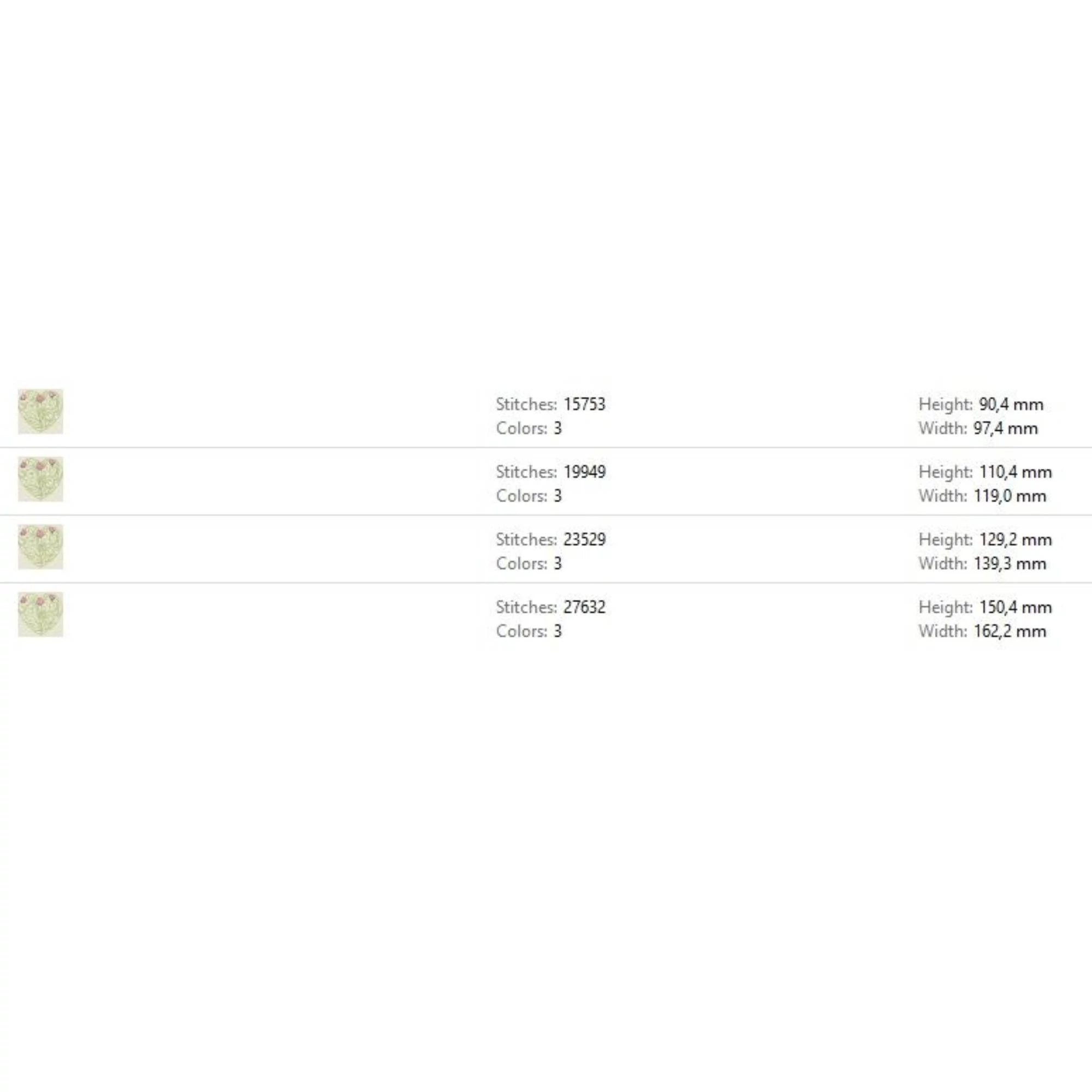 16x15cm 6.29'x5.9'Formats: PES / EMD / VIP / VP3 / HUS / SEW / EXP / DST / JEF / ART / XXX