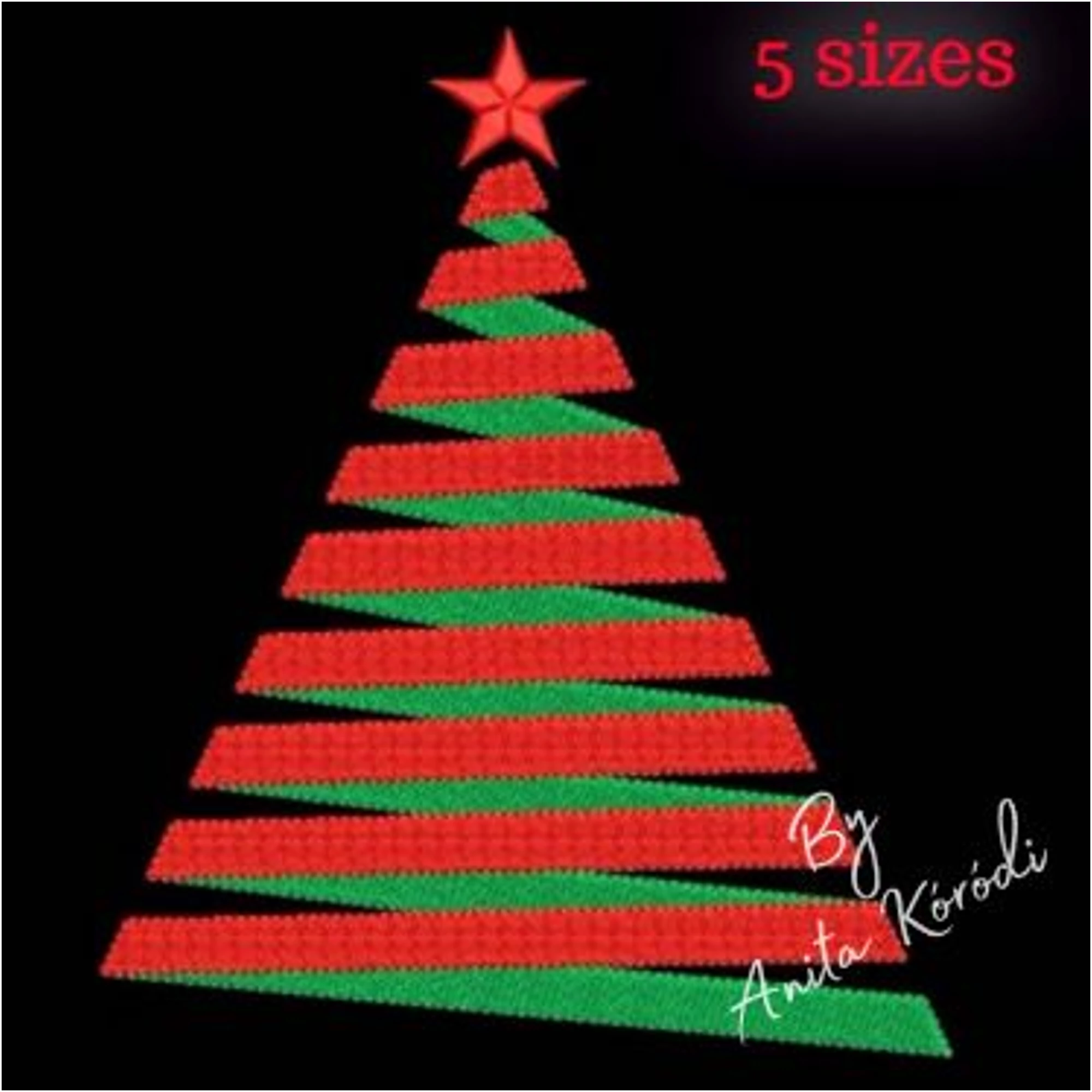 This modern Christmas tree embroidery design combines clean lines with festive red and green stripes, topped with a bright star.