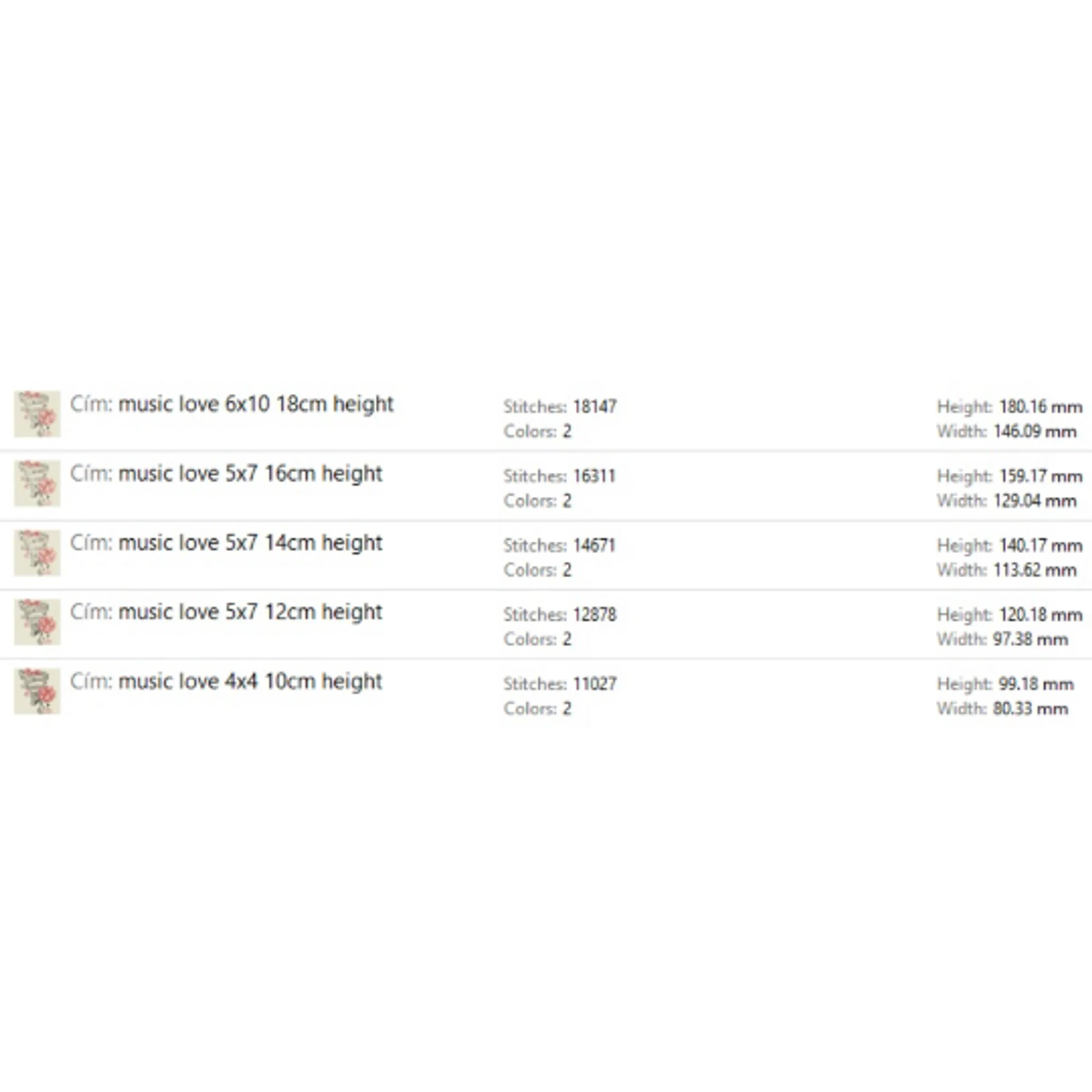 15x18cm height 5.9'x7.08'Formats: PES / EMD / VIP / VP3 / HUS / SEW / EXP / DST / JEF / ART / XXX