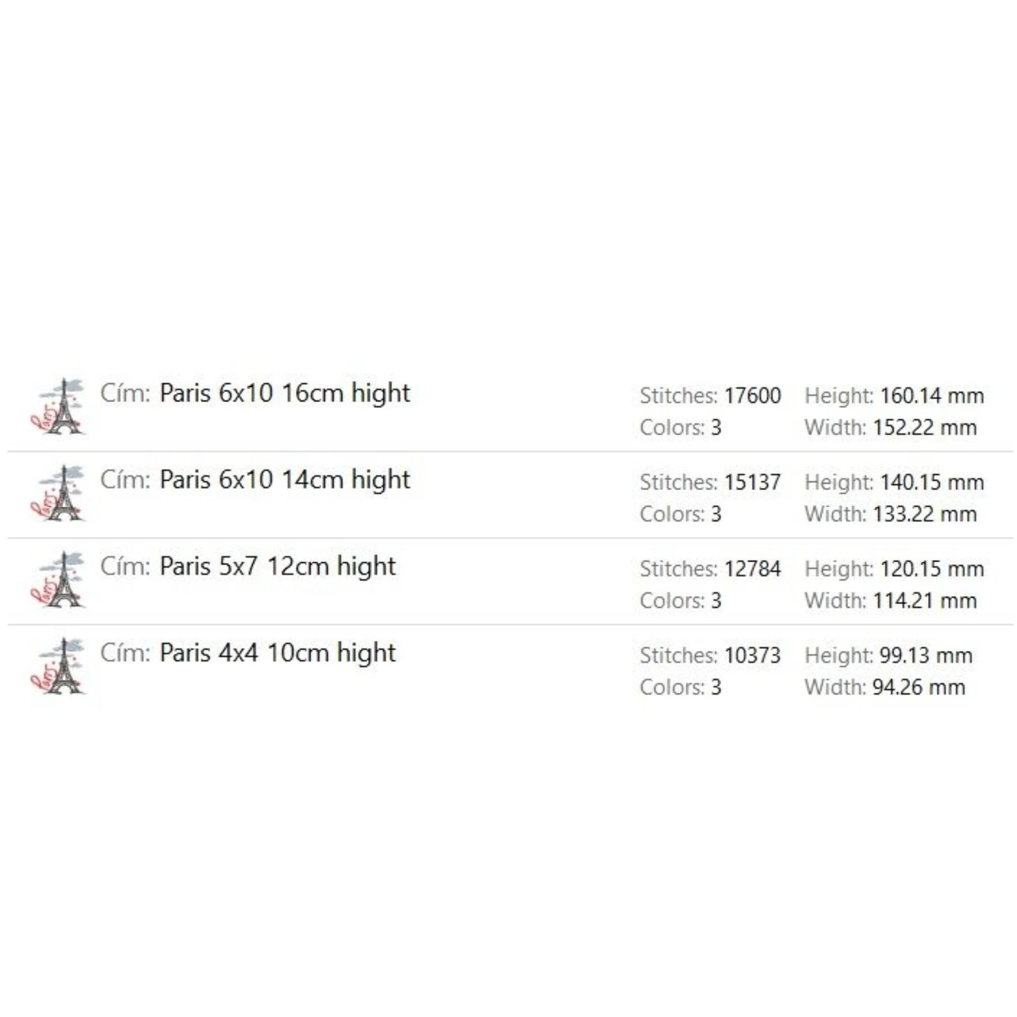 15x16cm hight 5.9'x6.29'Formats: PES / EMD / VIP / VP3 / HUS / SEW / EXP / DST / JEF / ART / XXX