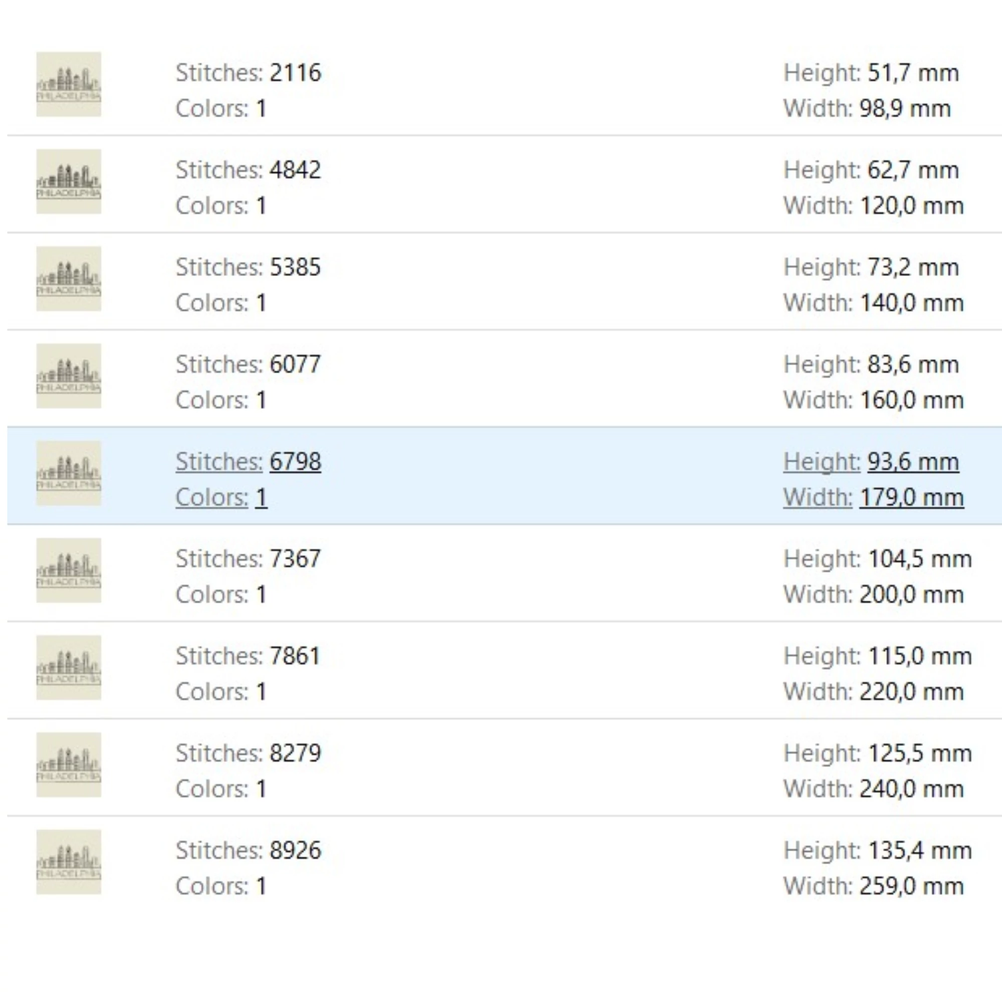 Philadelphia skyline embroidery machine design