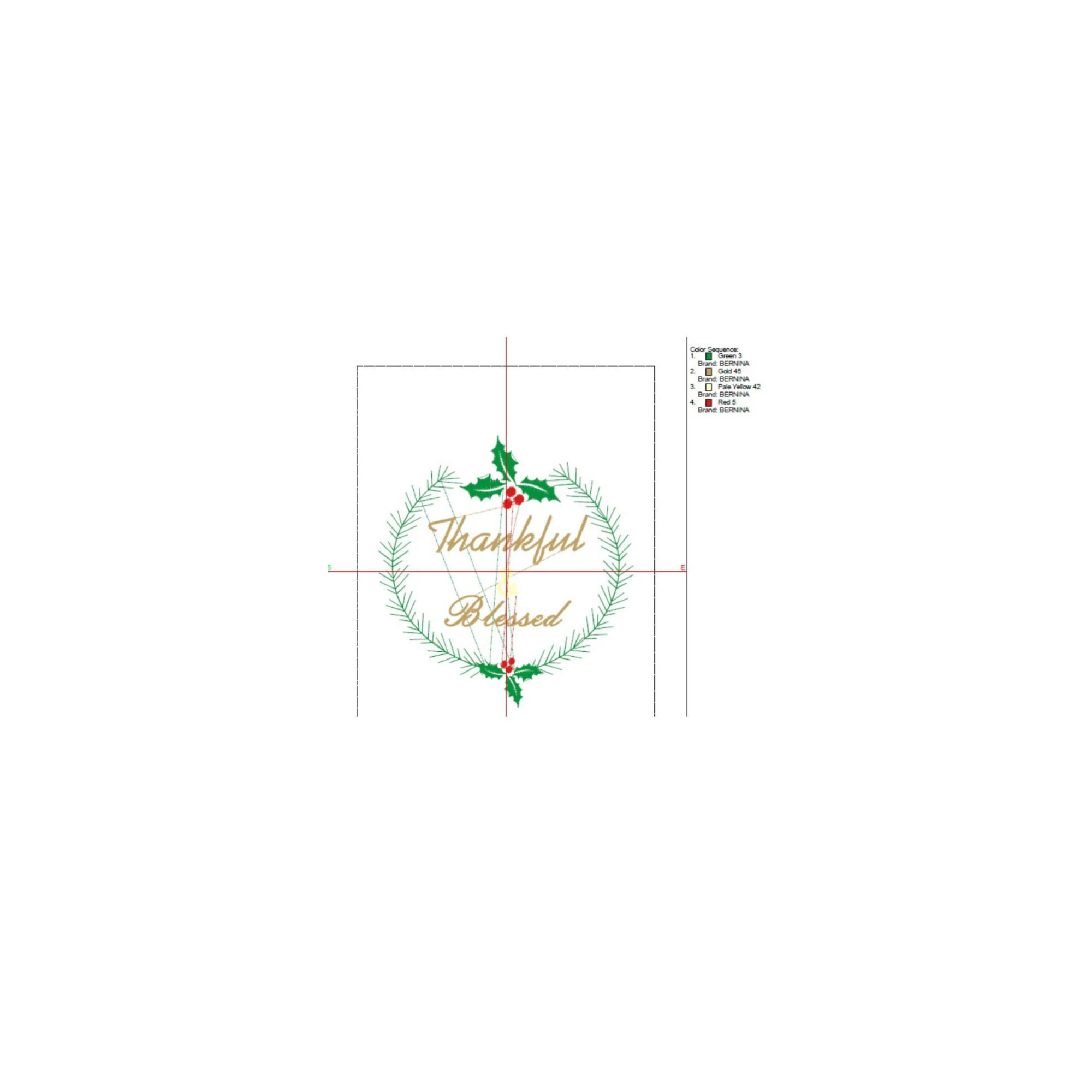Formats included: PES, DST, EXP, HUS, JEF, VP3, VIP, XXX, PCS, ART, EMD, EMBAdd a festive touch to your projects with this thankful and blessed wreath embroidery design decorated with holly leaves and berries. Perfect for holiday table runners, kitchen towels, pillows, clothing, or seasonal gifts. Professionally digitized, easy to stitch, and instantly downloadable. Multiple hoop sizes and popular machine formats are included for smooth, high-quality stitching.