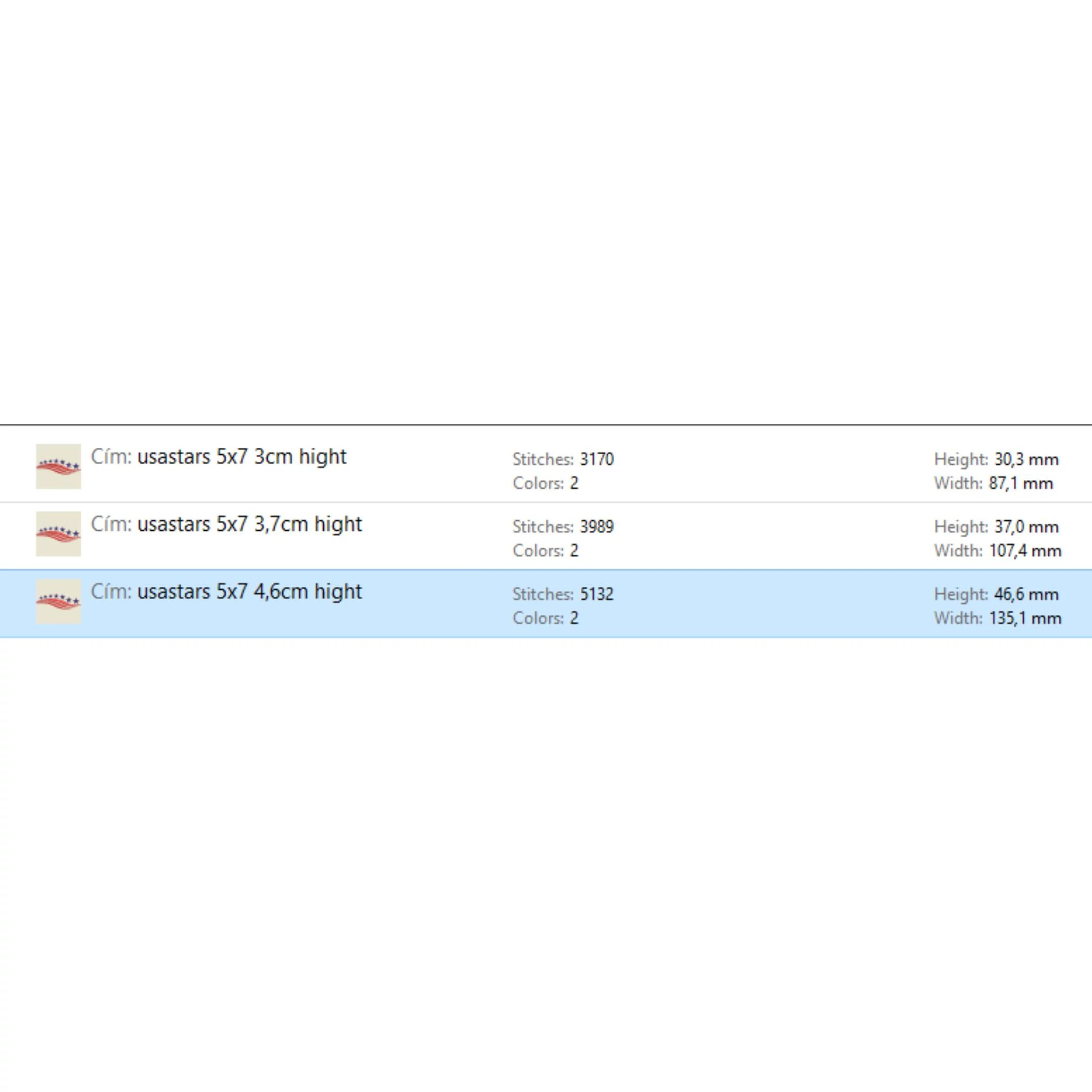 13.5x4.7cm hight 5.31'x1.85'Formats: PES / EMD / VIP / VP3 / HUS / SEW / EXP / DST / JEF / ART / XXX